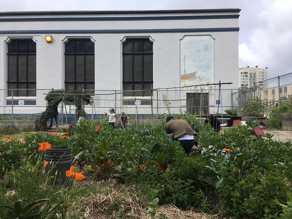 Rosa Parks Elementary in San Francisco, CA. This garden sits on the site of a former basketball court. The school community removed the original concrete and brought in soil in 2011. By 2017, the garden was due for a major upgrade to increase production, manage flooding, and to facilitate student inquiry.